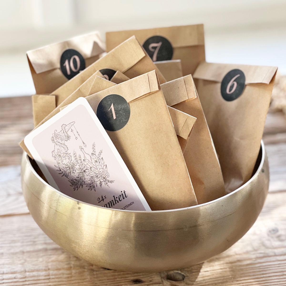Mit 24 Ritualkarten und Heilsteinen ist das Set wunderbar dazu geeignet einen eigenen Adventskalender zu befüllen.