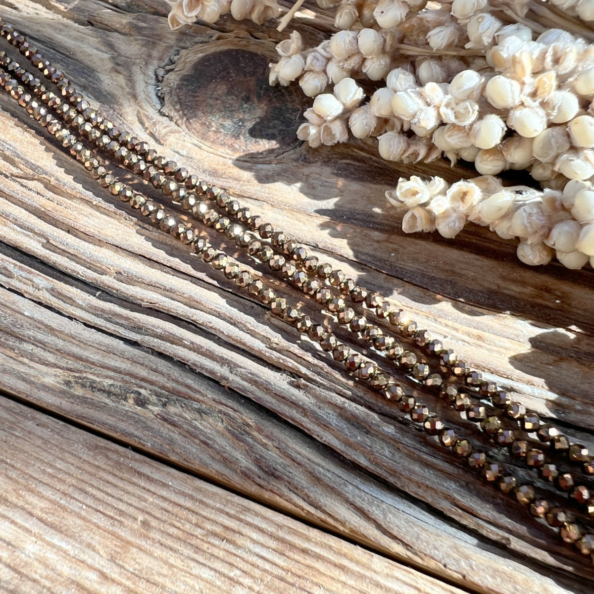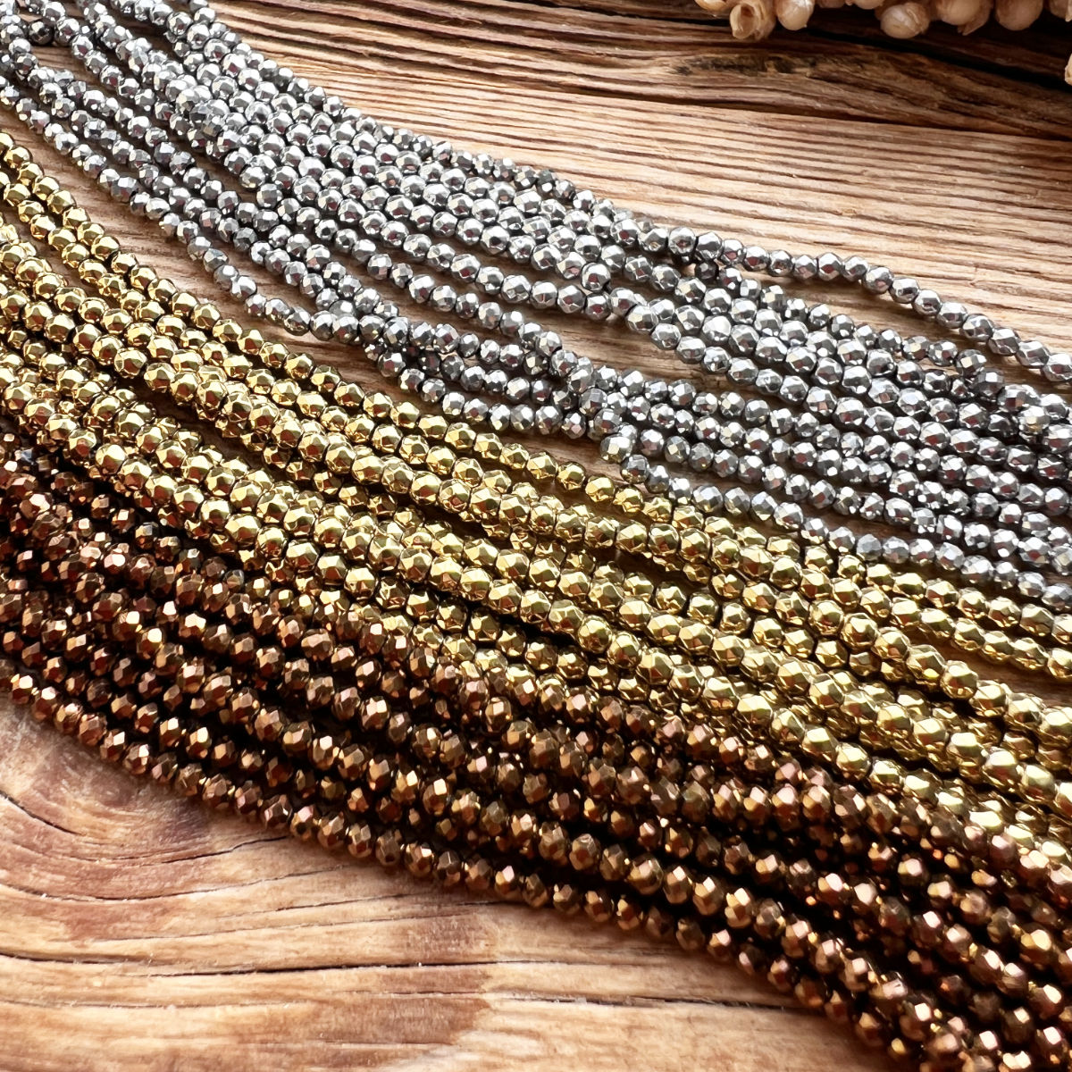 Fein, präzise und kraftvoll: Unsere kleinen, facettierten Hämatit-Zwischenperlen verleihen deiner Tantric Necklace Struktur, Tiefe und einen edlen Glanz. In Gold, Silber oder Bronze harmonieren sie mit jeder Steinsorte und bringen Stabilität sowie energetische Erdung in dein Design.