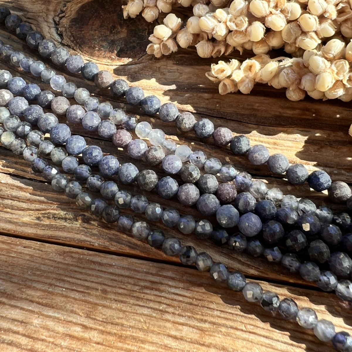 Hochwertige, facettierte Iolith-Perlen – perfekt für DIY Schmuck, Armbänder und das Knüpfen deiner eigenen Tantric Necklace oder Mala.