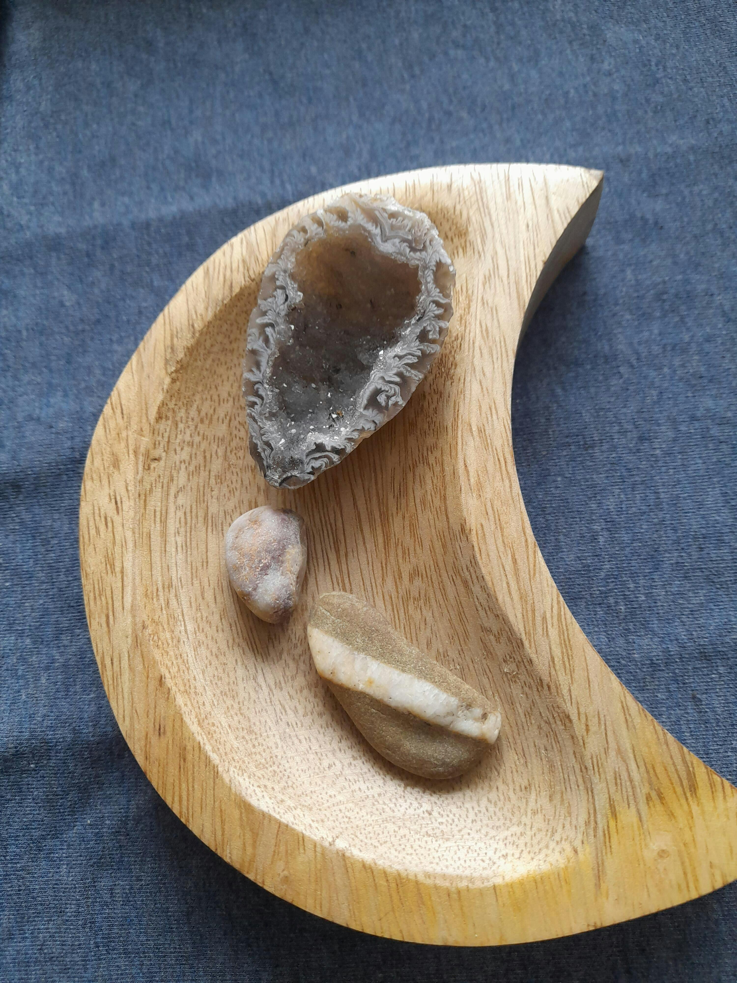 Unsere mondsichelförmige Schale, handgefertigt aus nachhaltigem Mangoholz, ist mehr als nur eine Aufbewahrung – sie ist eine liebevolle Erinnerung an die Zyklen des Lebens. Ob Kristalle, Schmuckstücke oder kleine Ritualelemente: In dieser Schale finden deine Herzensdinge einen besonderen Platz.