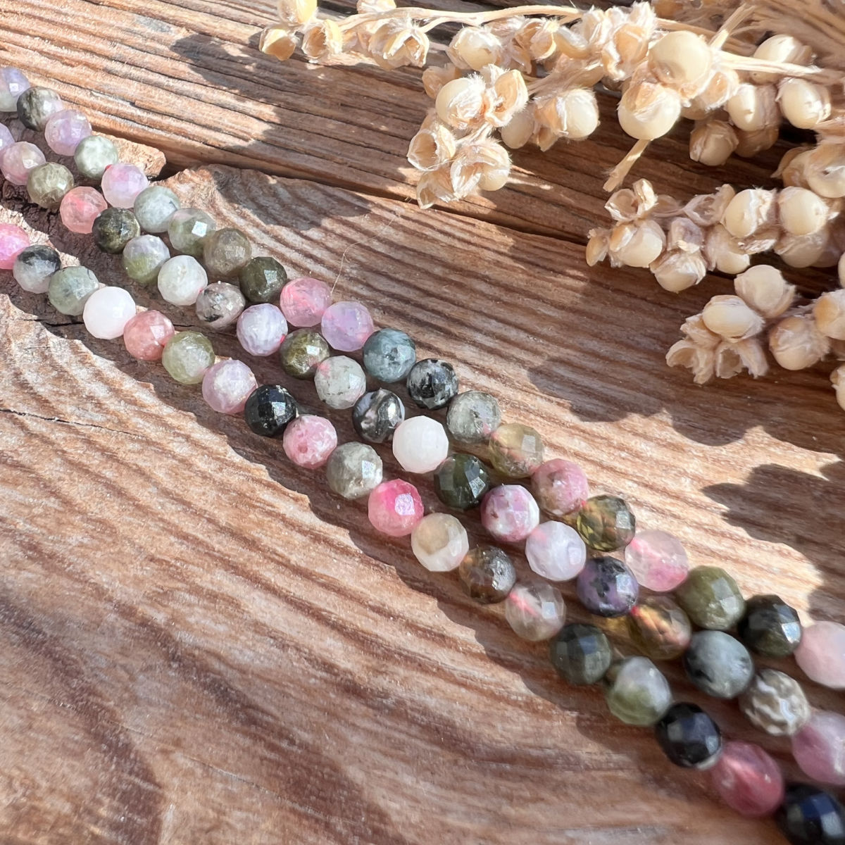 Hochwertige, facettierte bunte Turmalin-Perlen – perfekt für DIY Schmuck, Armbänder und das Knüpfen deiner eigenen Tantric Necklace oder Mala.