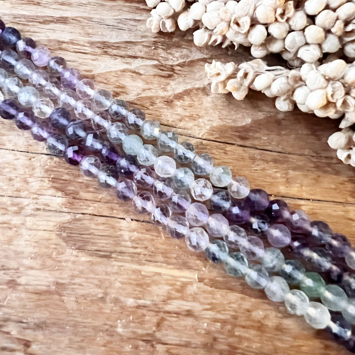 Hochwertige, facettierte Fluorit-Perlen – perfekt für DIY Schmuck, Armbänder und das Knüpfen deiner eigenen Tantric Necklace oder Mala.