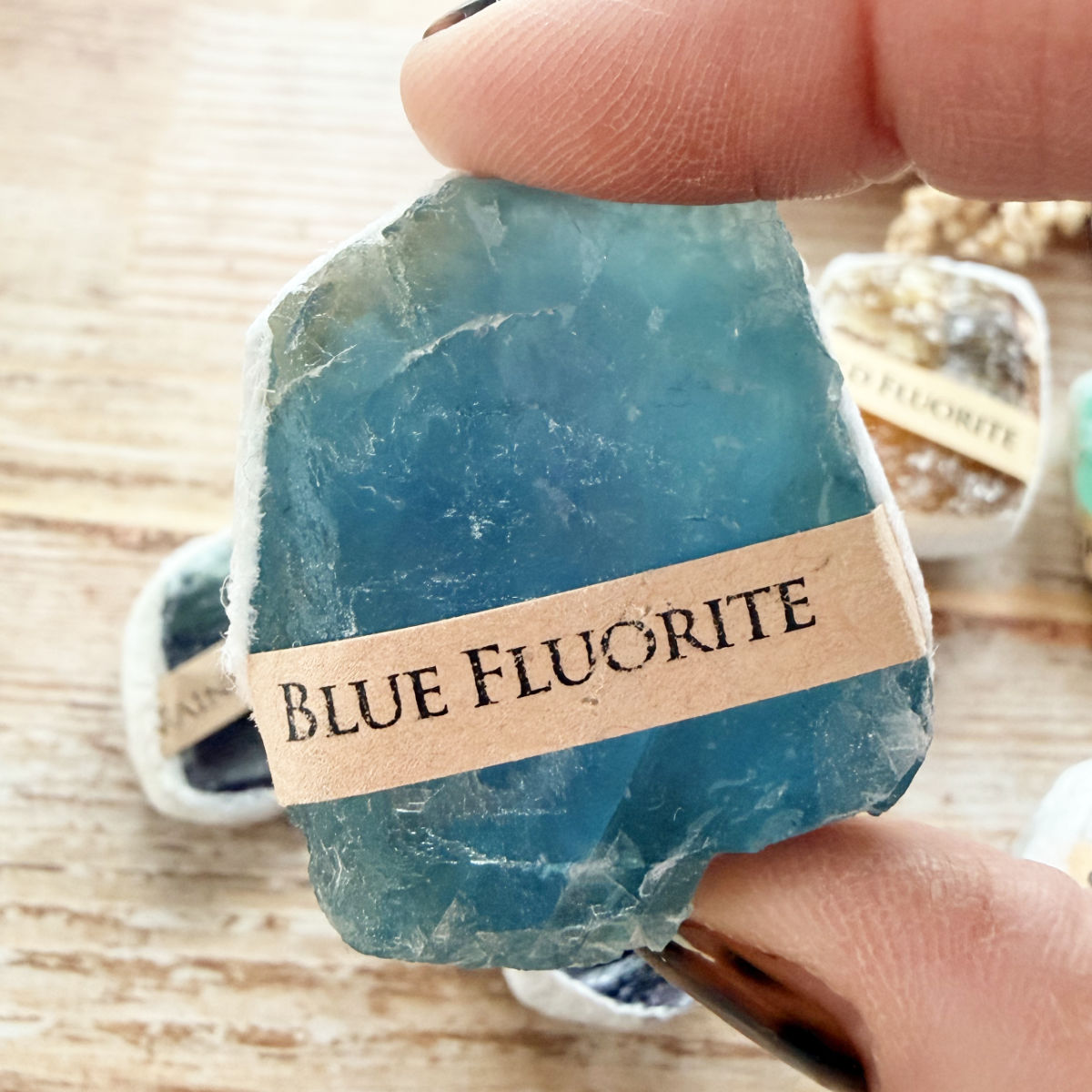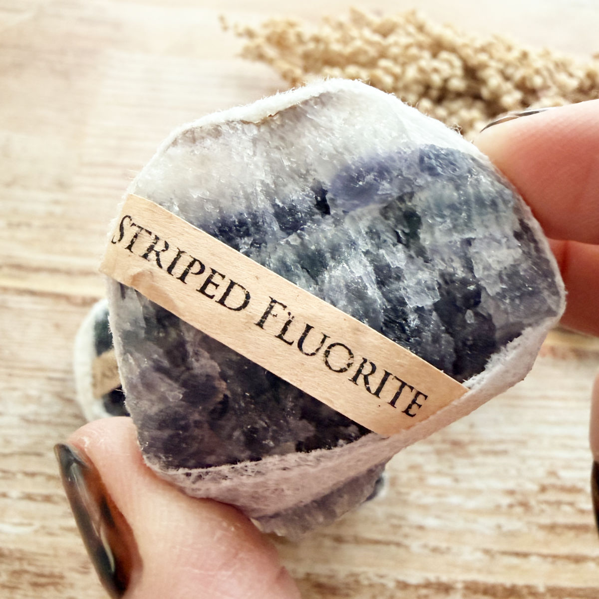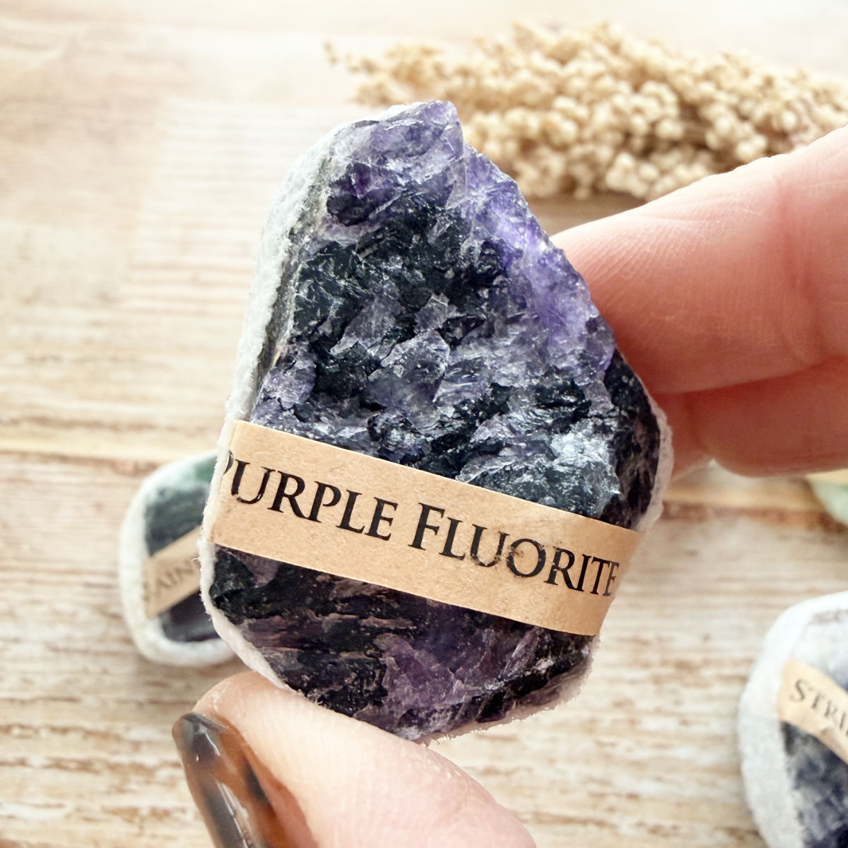 Du erhältst einen Fluorit-Rohstein in der von dir gewählten Farbe.