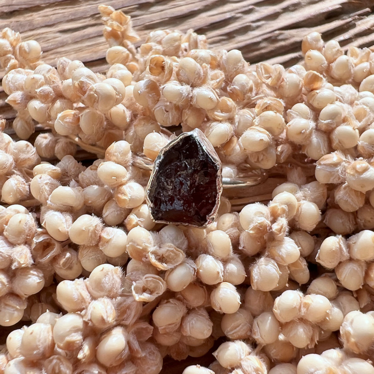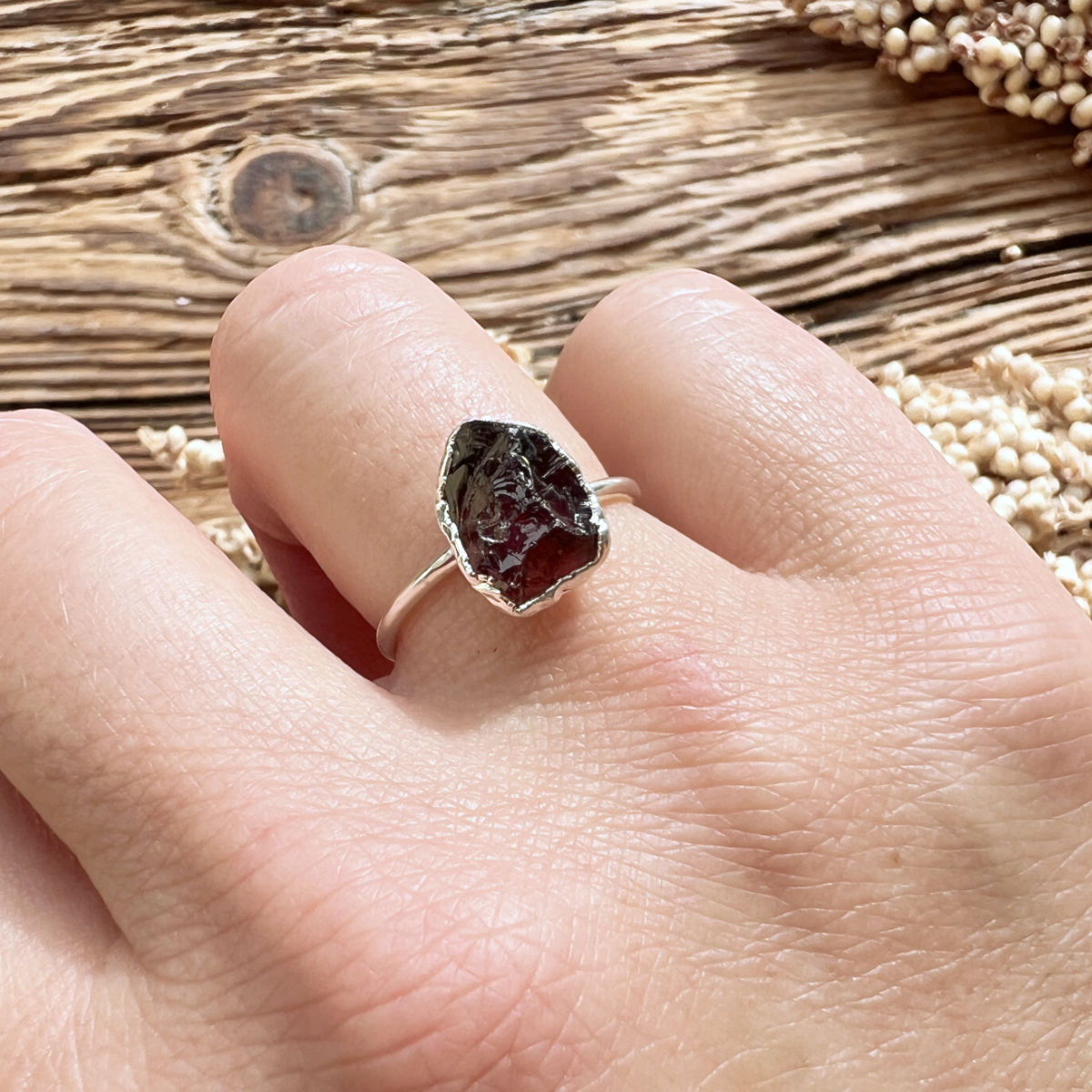Kraftvoller Silberring mit naturbelassenem Granat-Rohstein – aus 925 Sterling Silber, größenverstellbar und voller Energie für Stärke & Lebensfreude.