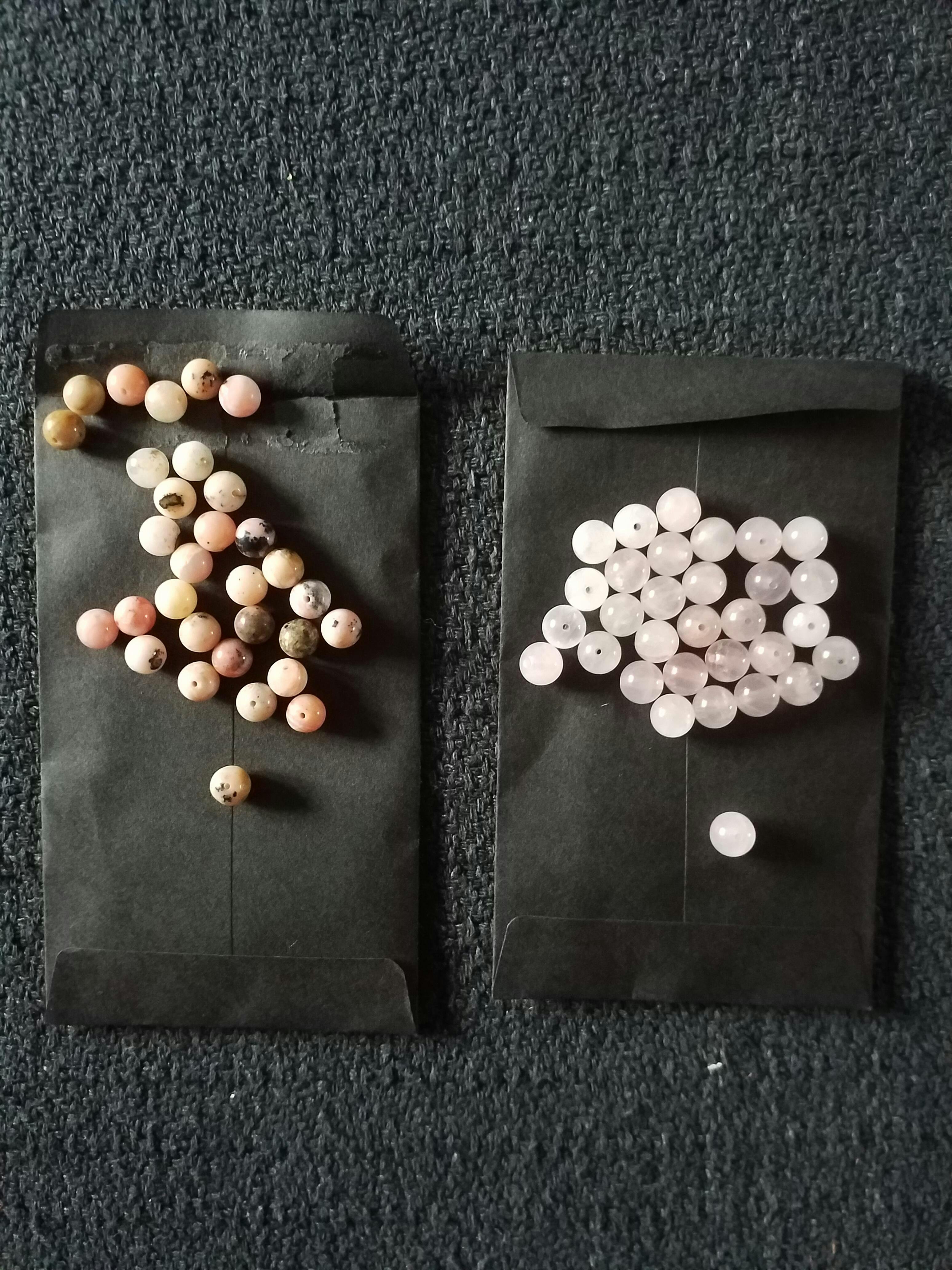 Du erhältst die gewünschte Anzahl an Perlen aus Rosenquarz mit einem Durchmesser von etwa 6 mm und einem Fädelloch von etwa 0,8 bis 1 mm.