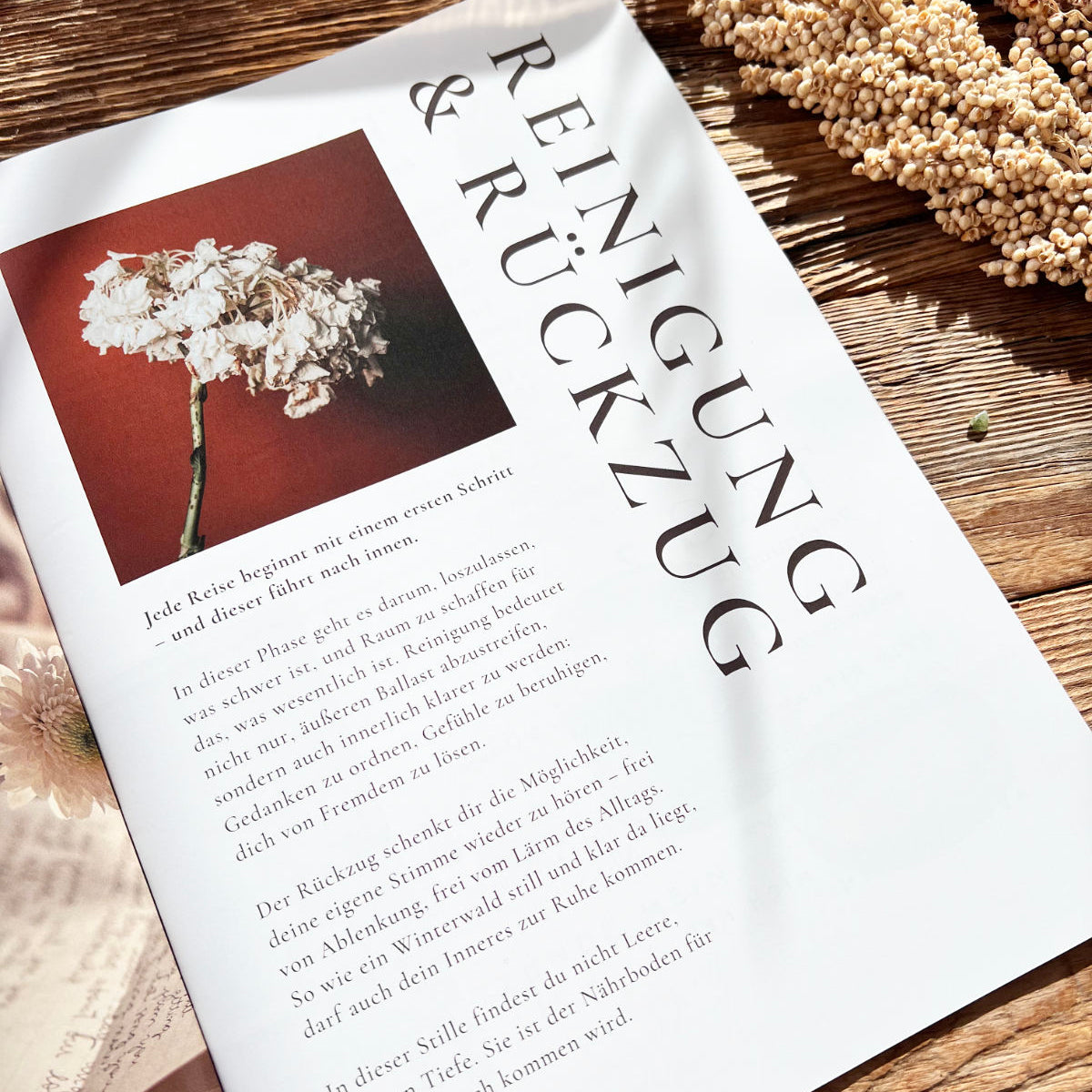 Dazu erhältst du ein begleitendes Booklet, das dir Impulse, Meditationen und kleine Übungen zu jedem Tag schenkt.