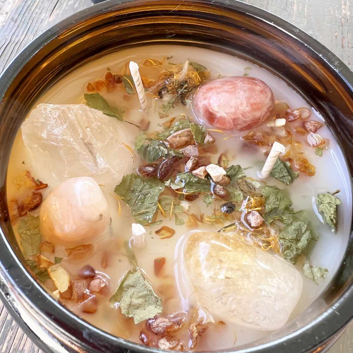 Jede Kerze enthält sorgfältig ausgewählte Kristalle, die auf ihre energetischen Eigenschaften abgestimmt sind. Vom beruhigenden Amethyst bis zum energiegeladenen Citrin – finde die Kerze, die deine spirituellen Bedürfnisse widerspiegelt.