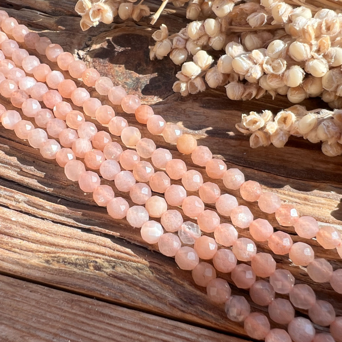 Hochwertige, facettierte Sonnenstein-Perlen – perfekt für DIY Schmuck, Armbänder und das Knüpfen deiner eigenen Tantric Necklace oder Mala.